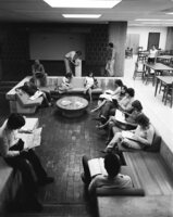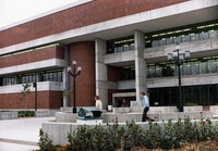 According to the May 1972 dedication program, the ground floor contained the campus computer center, technical services, TV production services, and a study area. The first floor was home to the library administrative offices, card catalog, technical services, lecture room and classrooms. The second floor contained Special Collections (including archival material), curriculum material, photography laboratory, and offices for the academic department of Library and Audio-Visual Education. The third floor housed reference services and reference collection, periodicals, microfilm, classrooms, study carrels, and offices. The fourth and top floor included the bulk of the circulating book collection, 80 enclosed study carrels, and two study rooms.